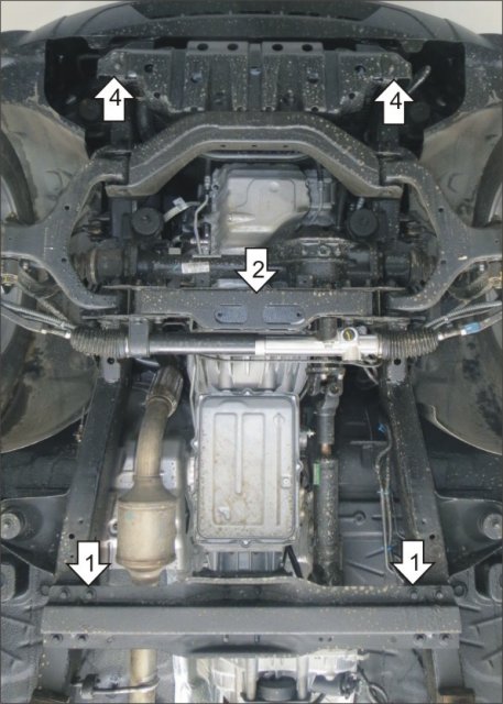 Защищаемые агрегаты: Двигатель, Передний дифференциал, Коробка переключения передач, Радиатор