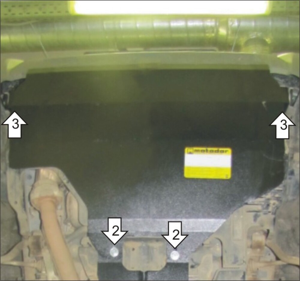 1. Защита MOTODOR ставиться поверх пыльника. Установить на транспортировочные проушины Кронштейны при помощи Шайб специальных, Болтов М10х35, Шайб 10 и Гроверов 10.