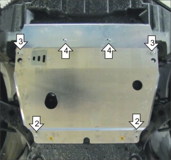 4. Установить передние точки крепления защиты в штатные резьбовые отвертсия с помощью болтов М6х30.