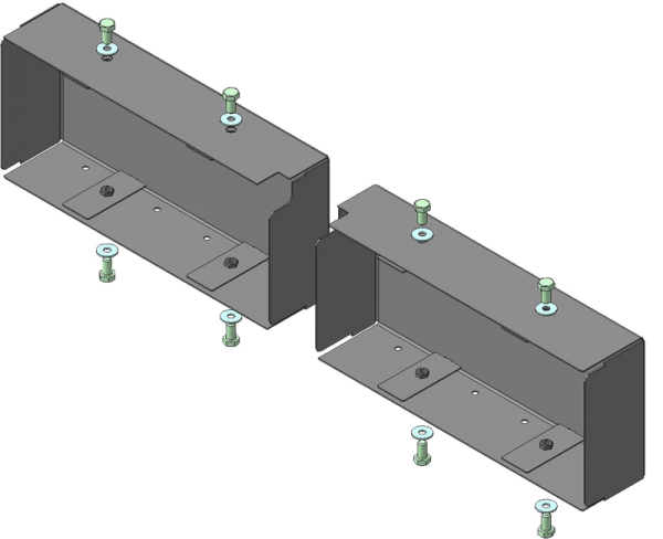1. Установить пластины в пазы короба и наживить Болты М8х20 с Шайбами 8