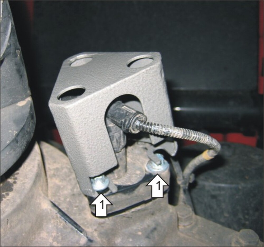 \n 1. Отвернуть на несколько оборотов болты крепления датчика, завести под них защиту и затянуть.