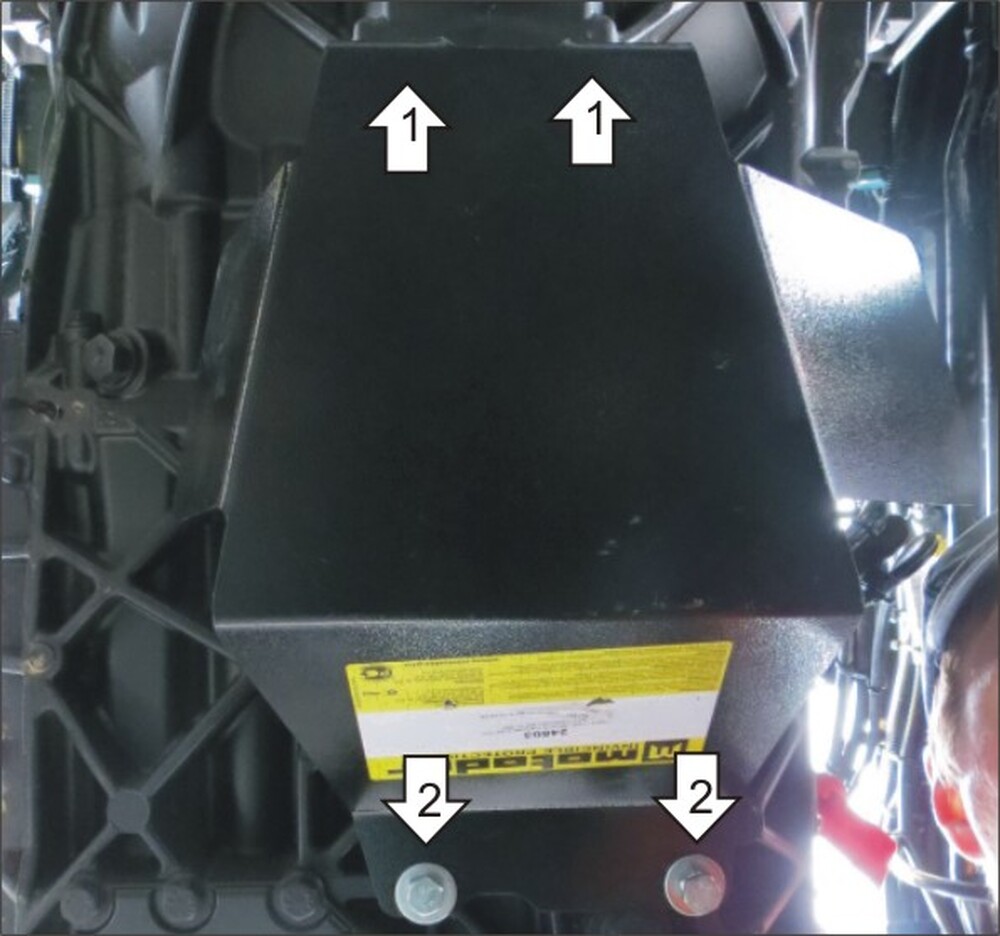 2. Болтами М10х20 с Шайбами 10 и Гроверами 10 прикрепить Защиту в штатные отверстия. Затянуть весь крепеж.