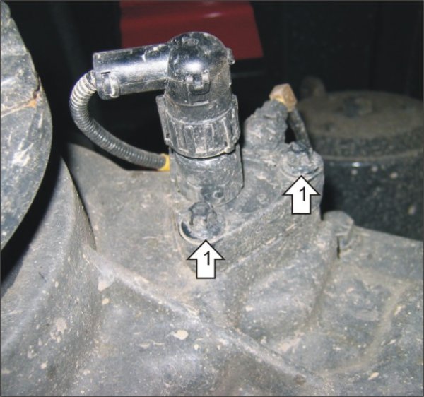 \n 1. Отвернуть на несколько оборотов болты крепления датчика, завести под них защиту и затянуть.