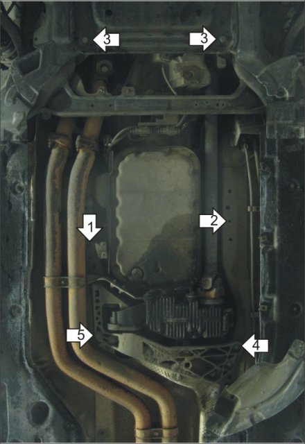 3. Установить совместно с защитой двигателя передние точки защиты при помощи штатных болтов.
