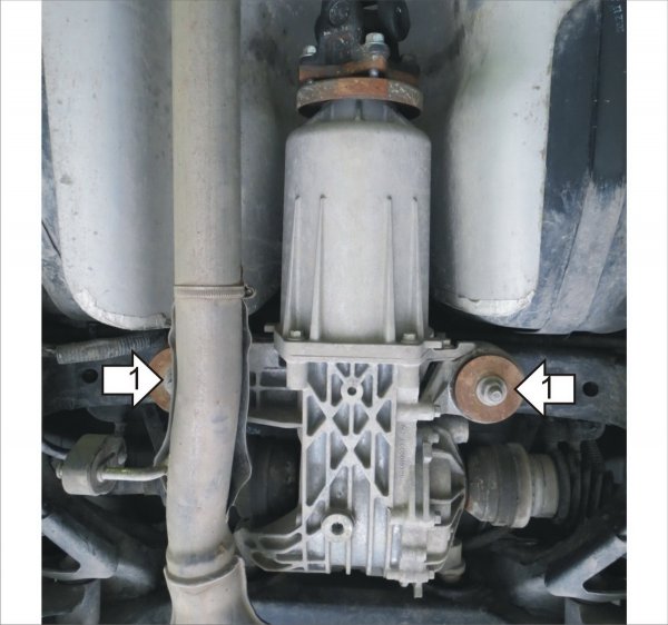 1)Открутить поочередно гайки крепления заднего деффиренциала.