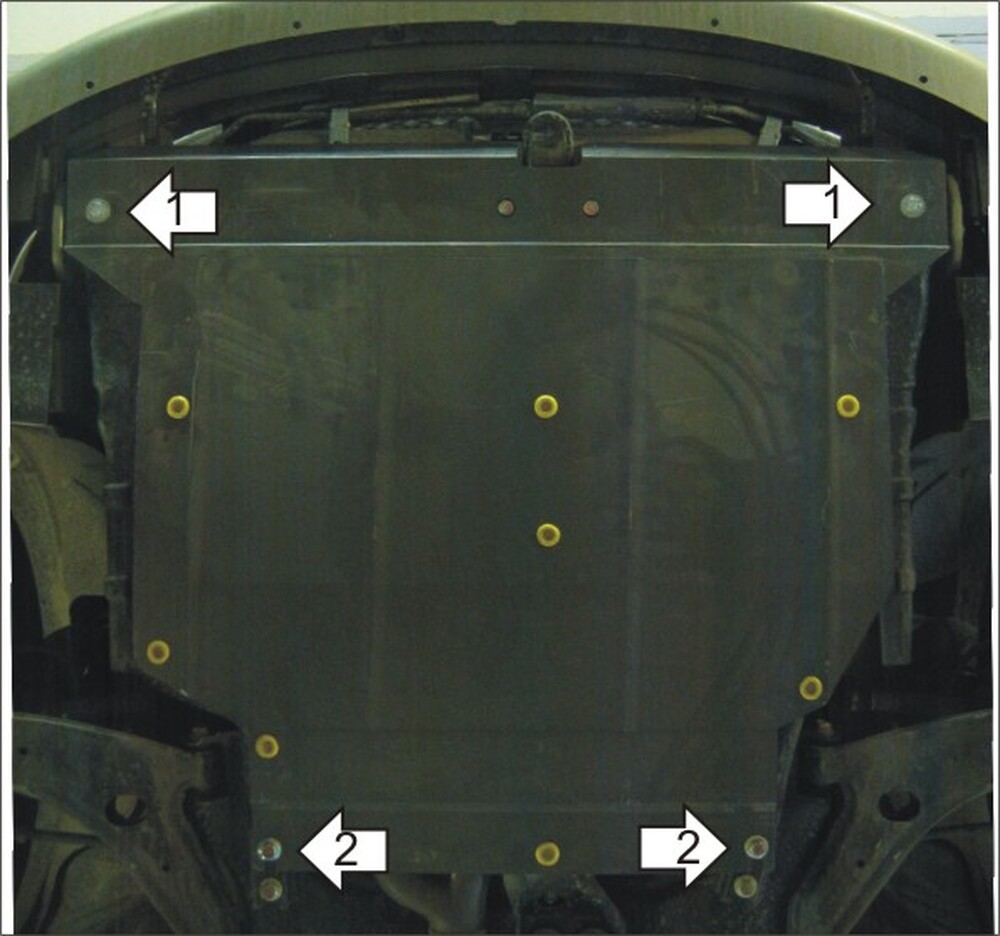 2. Закрепить задние точки защиты Штатными болтами.