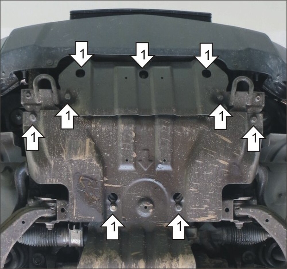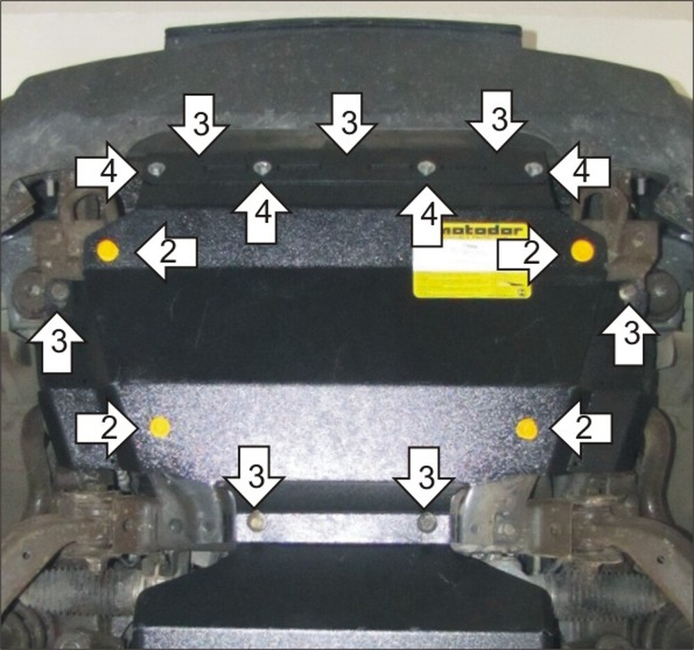 3. Установить Защиту в штатные места крепления штатными болтами.