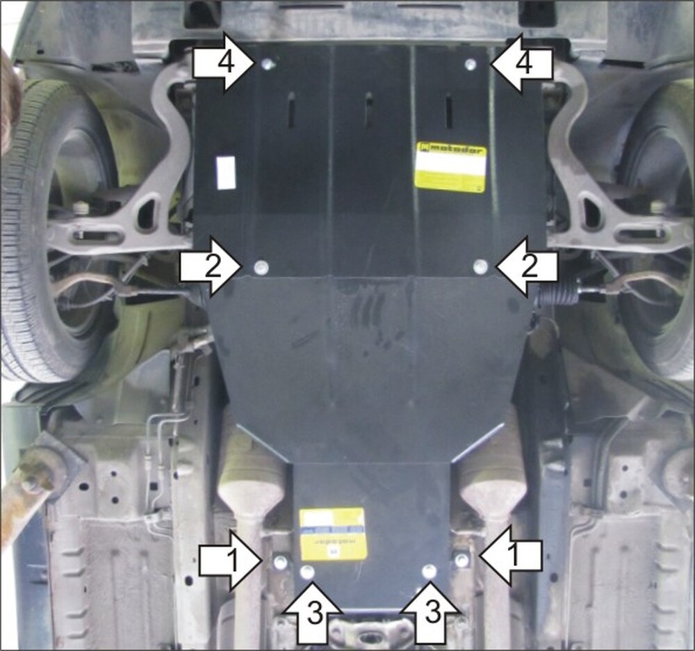 4. Установить на подрадиаторную балку передние точки крепления Защиты при помощи ПУ 60х14х6 А20В10 М8, Болтов М8х30, Шайб 8 и Гроверов 8.\n